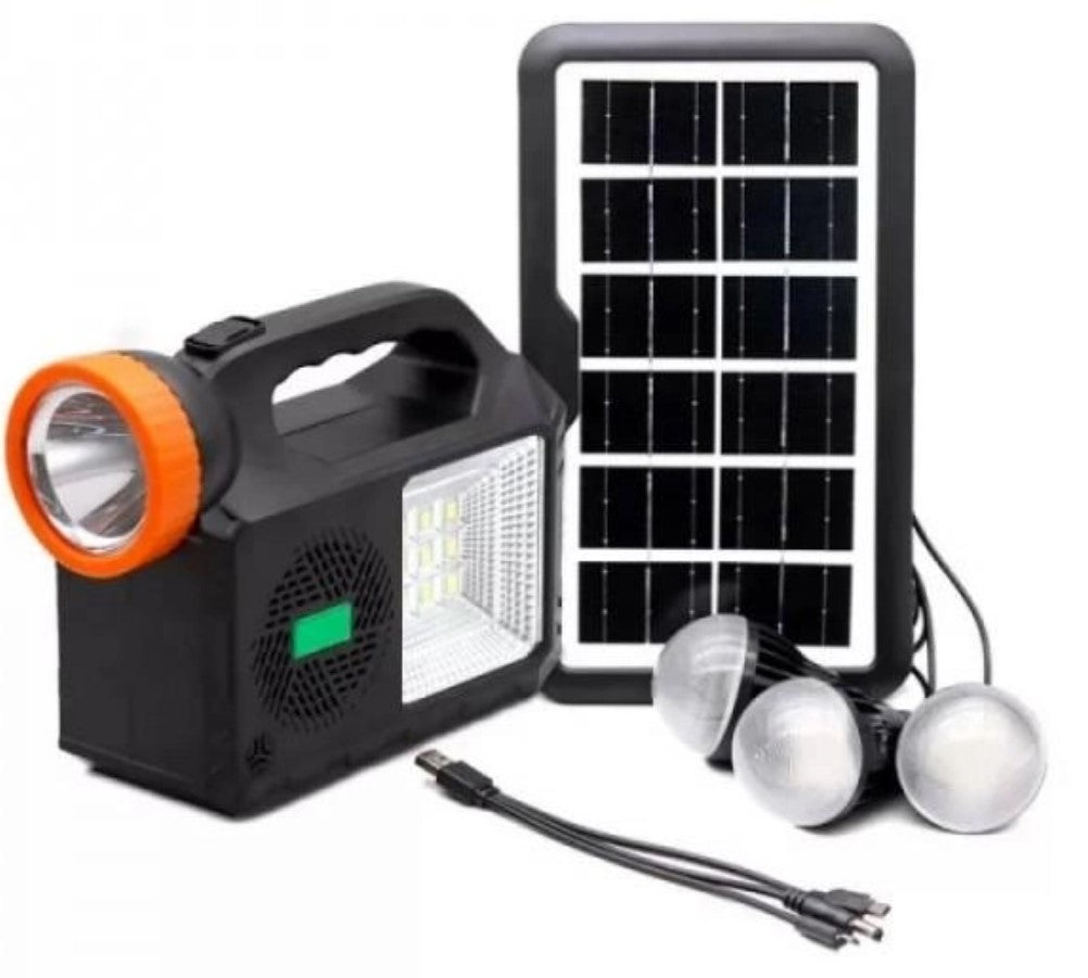 Descripción @El sistema solar autónomo GD102 es ideal tanto para uso doméstico como para los amantes de los viajes, la pesca, la caza y otras actividades al aire libre. La presencia de un panel solar no te dejará sin iluminación y siempre será posible cargar teléfonos móviles u otros dispositivos. La presencia de una radio y la posibilidad de escuchar música a través de una unidad flash definitivamente no permitirán que te aburras ni siquiera lejos de la civilización. ¡Este es un gran regalo para tu familia, amigos y para ti mismo! @@La linterna inalámbrica GD102 es la solución ideal para pequeños suministros de energía durante las vacaciones, viajes de acampada nocturna y tiendas de campaña, remolques de servicio y otros objetos. Ideal para recreación al aire libre, disfrute de sus vacaciones cómodamente. @@Beneficios: @Radio FM incorporada con antena y reproductor MP3; @Hay conectores USB, micro-SD y Bluetooth; @Carga desde una red de 220V y desde una batería solar; @Linterna con potente foco lateral y 3 bombillas de emergencia; @Función Power Bank: carga un teléfono móvil, tableta, etc. (3 tipos de conectores de carga). @@Características: @Tipo: farol; @Admite función Bluetooth; @Radio FM incorporada; @Reproductor de mp3 incorporado, reproductor flash USB y reproductor TF; @Dos salidas USB de 5V + cable de carga móvil 3 en 1; @El estuche está equipado con una linterna con una potencia de 20 W; @Foco LED integrado de 80 W superbrillante; @Batería de litio incorporada de 5000 mAh; @Con panel solar 6V 3,8W (tiempo de carga 10-12 horas); @Tres lámparas LED externas, cable de 3 m (cuando esté completamente cargada, se pueden utilizar 3 lámparas simultáneamente durante 8 a 12 horas, dos durante hasta 15 horas, una durante hasta 30 horas). @@Juego completo: @Lámpara de emergencia con Power Bank Gd-Lite GD-Times GD-102; @Un panel solar; @3 lámparas LED SMD; @Cable USB con 3 adaptadores; @Paquete. @@Características Linterna de emergencia con Power Bank Gd-Lite GD-Times GD-102 con batería solar y 3 bombillas @Deja un comentario @Código: 370509093 @@Horas de operación reclamadas @Cuando está completamente cargada, se pueden usar 3 lámparas simultáneamente durante 8 a 12 horas, dos por hasta 15 horas, una por hasta 30 horas) @Equipo @con banco de energía @De la radio @Tipo @Linternas @color del LED @Blanco @Métodos de carga @De la red 220 V @ De la energía solar @Baterías @Batería integrada @Material de la carcasa @El plastico @Capacidad de la batería , mAh @5000 @Equipo @Lámpara de emergencia con Power Bank Gd-Lite GD-Times GD-102; @Un panel solar; @3 lámparas LED SMD; @Cable USB con 3 adaptadores; @Paquete. @Color @Negro @País de registro de la marca @Porcelana @Garantizar @14 días @País de origen de los bienes @Porcelana * Las características y el conjunto completo de productos pueden ser modificados por el fabricante sin previo aviso.