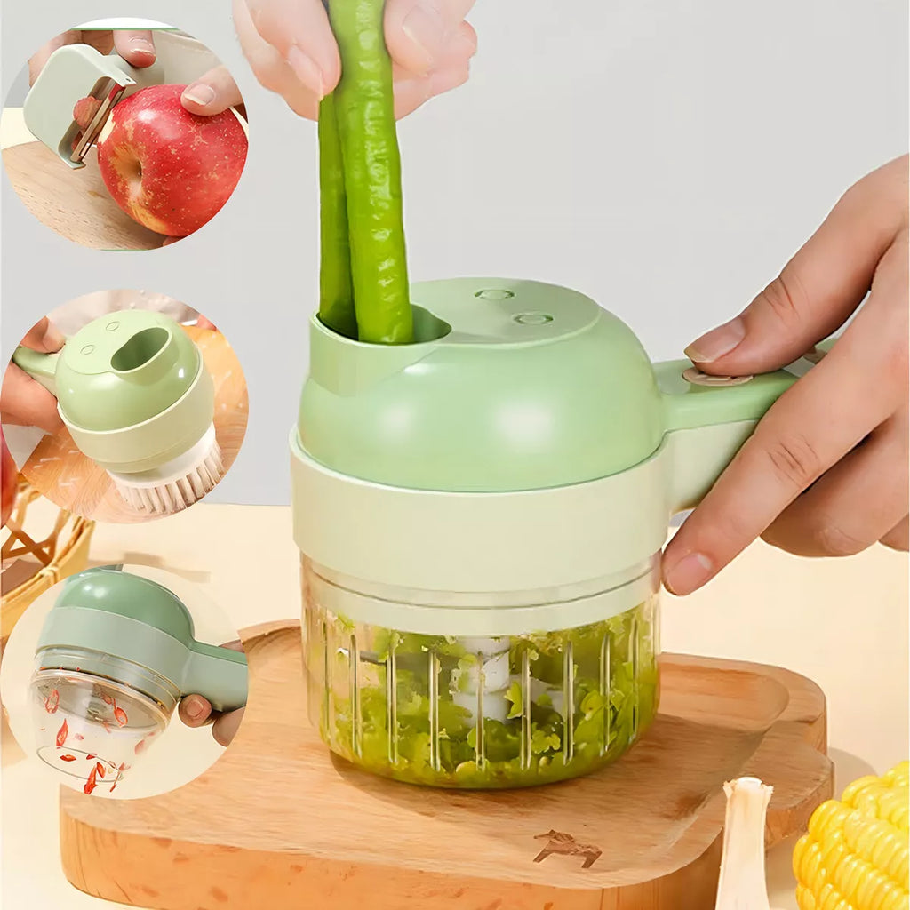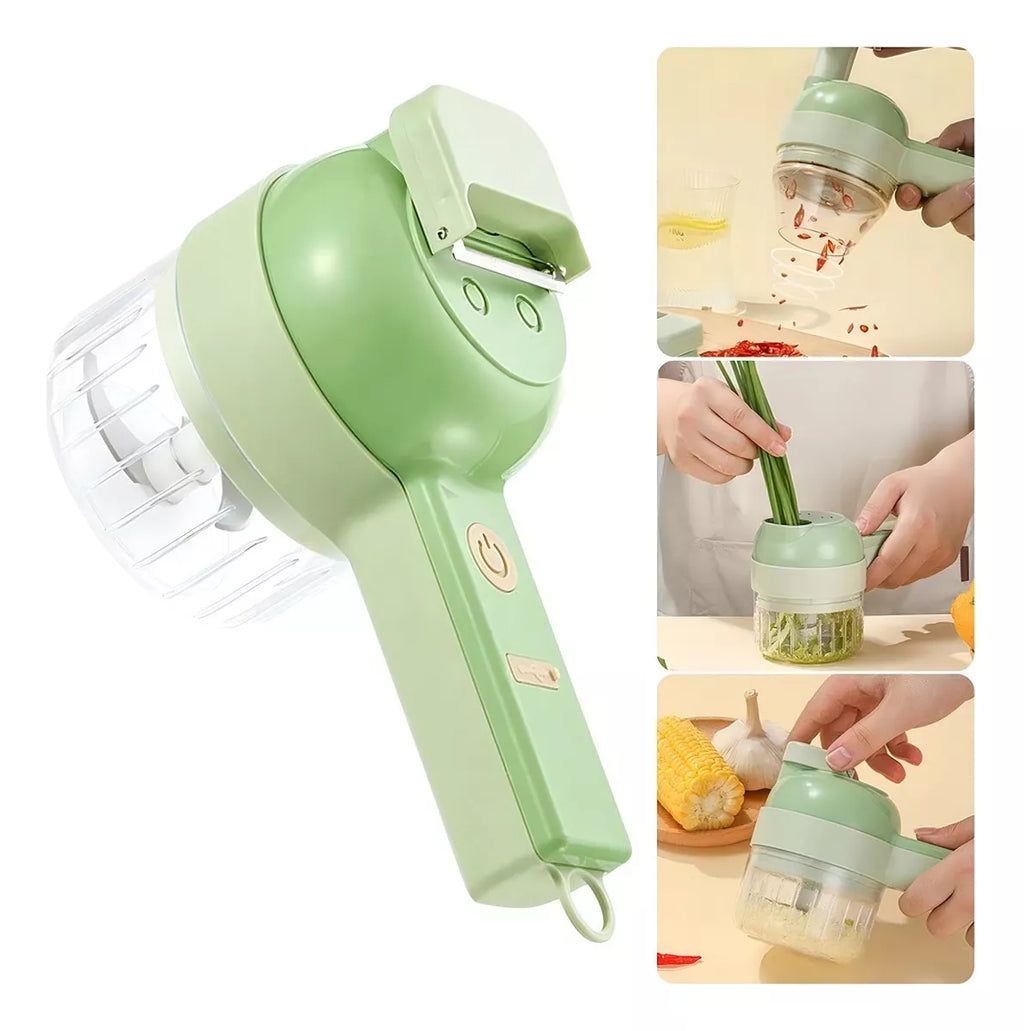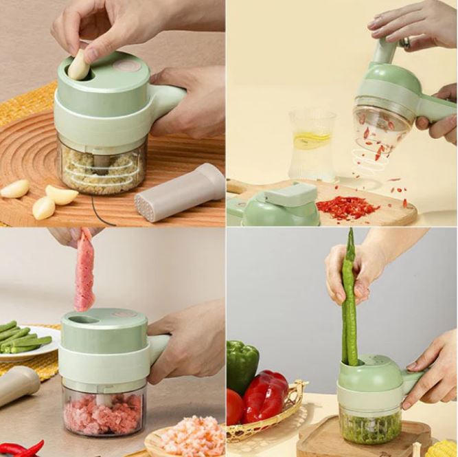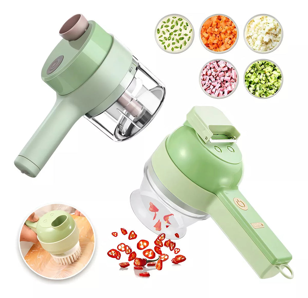 El paquete incluye: 1 x Trituradora multifunción 4 en 1 | Trituradora rápida 1 x Rebanadora; 1 x Trituradora; 1 x Cepillo de limpieza; 1 x Pelador; 1 x Espátula; 1 cable USB;