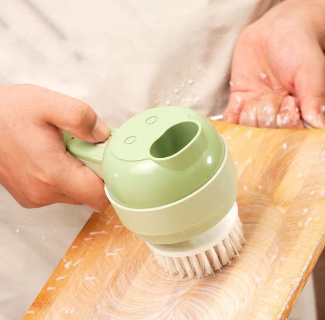 Cuestión de segundos Práctico y fácil de usar, con sólo pulsar un botón verá los sorprendentes resultados. Con él, podrá tener un cortador de verduras eléctrico, una picadora de carne eléctrica, un pelador y un cepillo de limpieza eléctrico, todo en un único set multifuncional